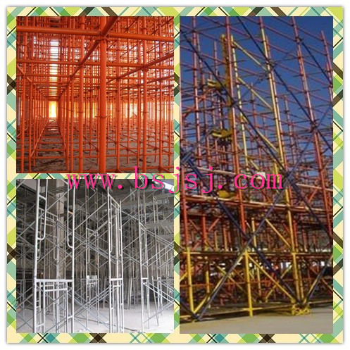 钢管表面应无裂纹、凹陷、锈蚀,加工前初始弯曲不应大于L/1.000 ( L为钢管长度)。钢管不得接长使用。水平架、钢梯及脚手板的搭钩应焊接或铆接牢固。各杆件端头压扁部分不得出现裂纹,销钉孔、铆钉孔应采用钻孔,不得使用冲孔。加工中不得产生因加工工艺造成的材料性能下降的现象。